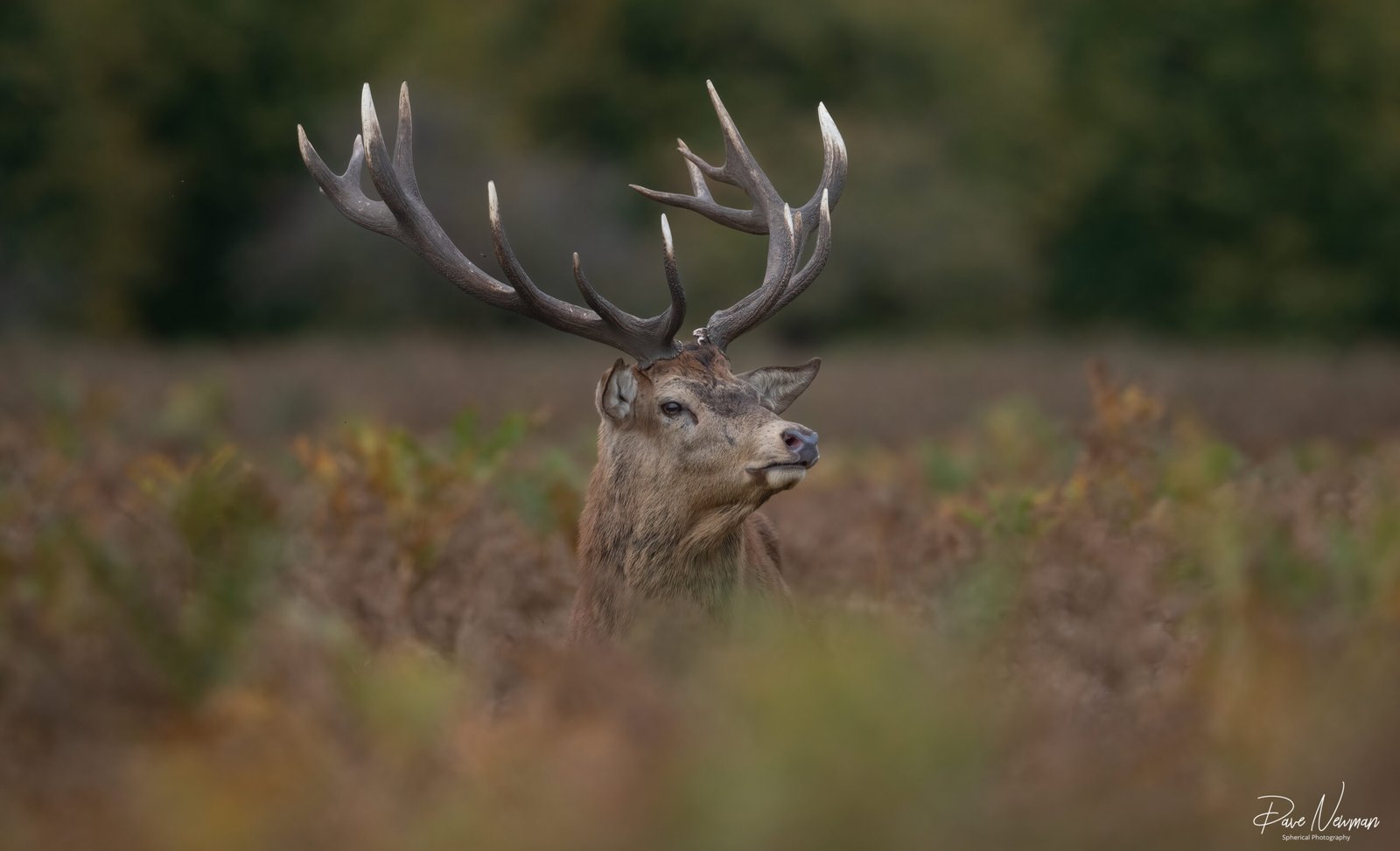Red Stag peeking over the bracken