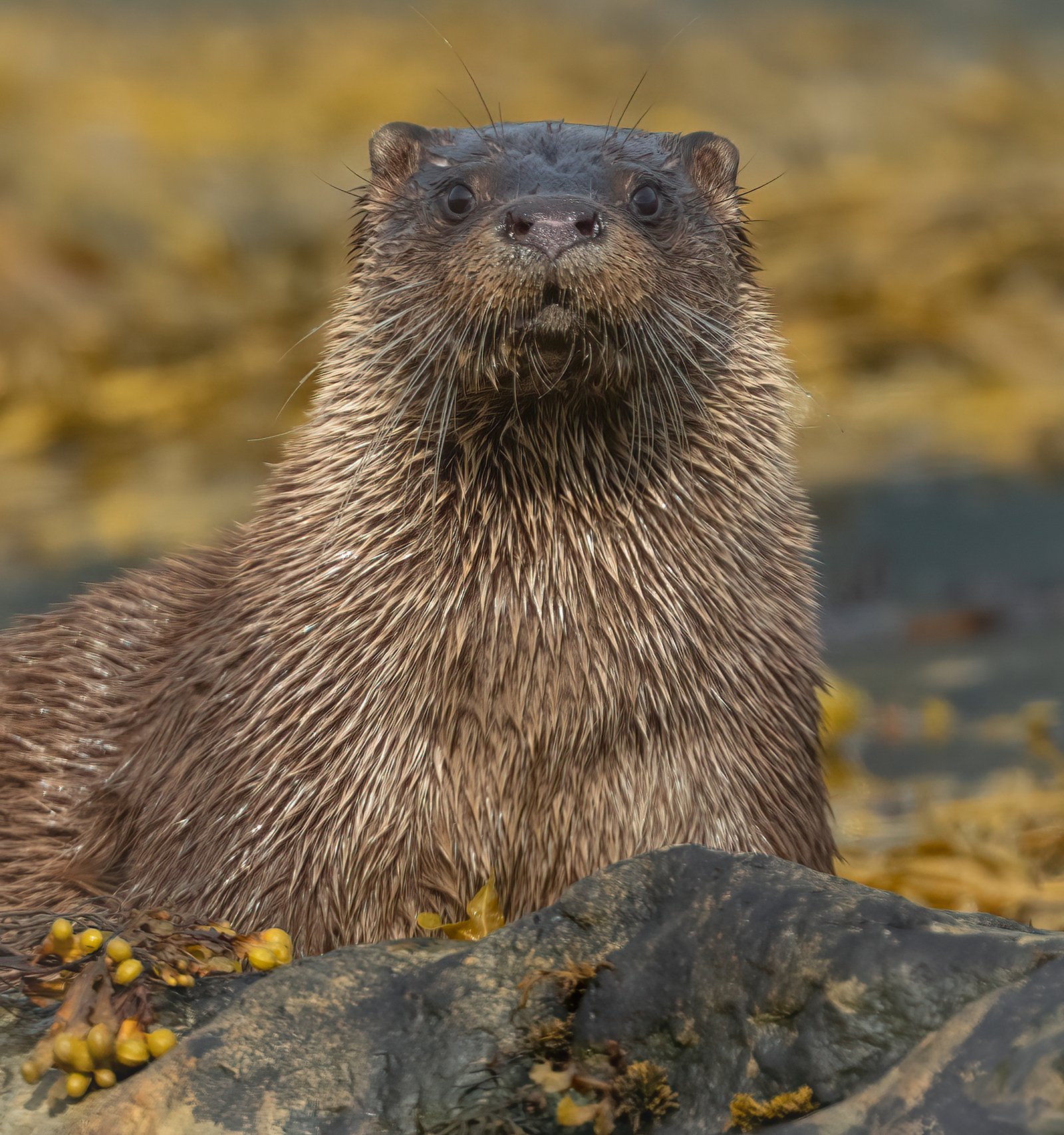 Lock eyes with a curious otter sat upright and staring directly down the lens. A rare, face-to-face encounter with nature’s most playful predator
